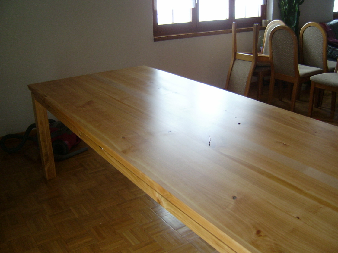 In der Folge stellte sich heraus, dass das Ahorn Element beim Bau der Tischplatte eine noch zu hohe Holzfeute auswies. Der Trocknungsvorgang im Hause des Kunden brachte dann diese Spannungen, die schliesslich zum Riss der Platte führte.